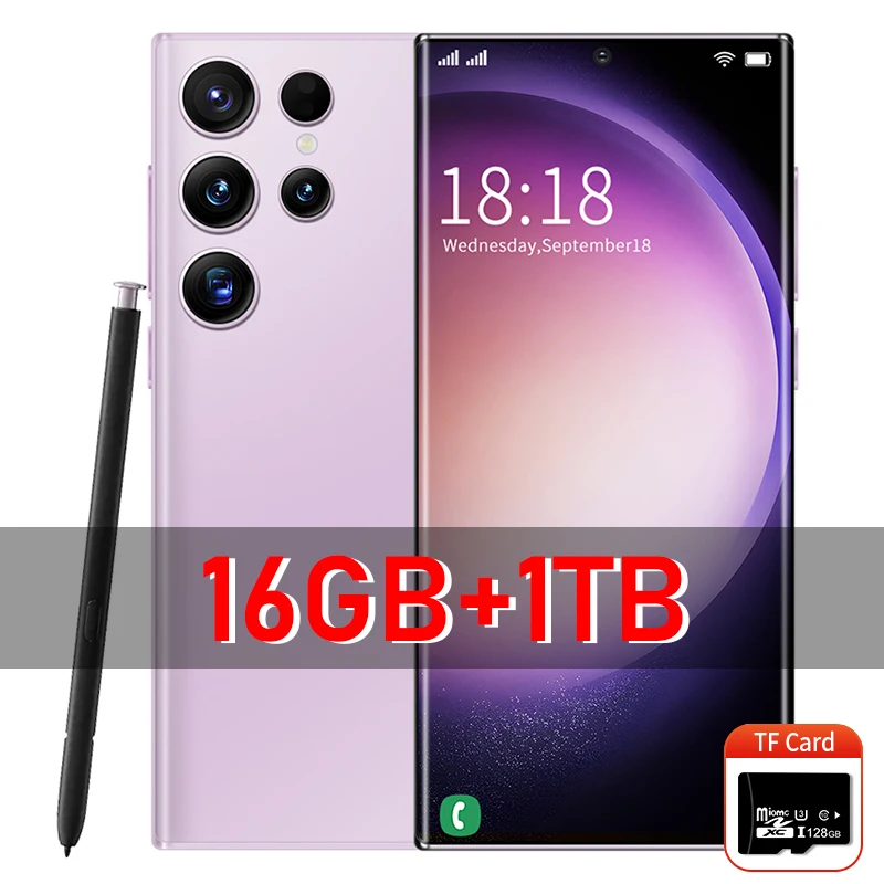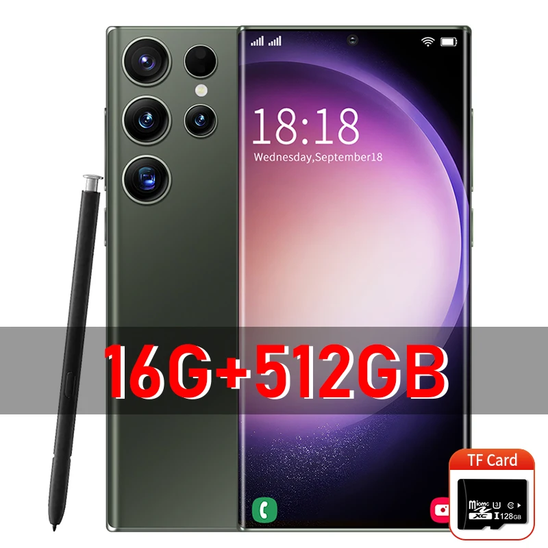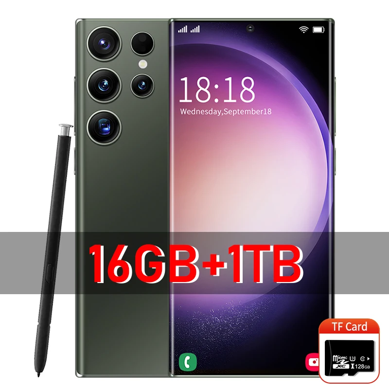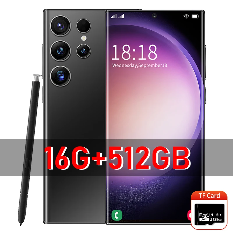 Smartphone Android S23Ultra 5G, téléphone portable, 7.3 pouces, 6800mAh, 16 Go + 1 To, téléphone portable de type C, version globale